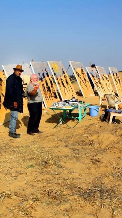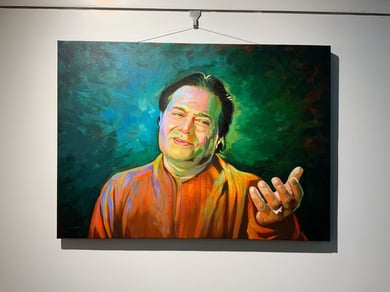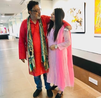 For over 15 years, Shipra Vyas has transformed her passion for abstract expressionism, combining rich storytelling with vivid colors inspired by her father's artistic legacy in Bikaner. She has consistently assisted her father Shree Gopal Vyas throughout her artistic career.